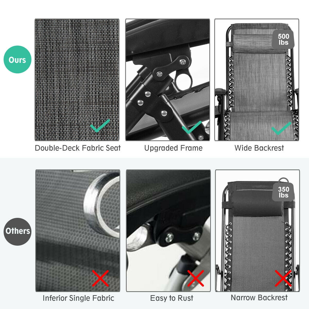 Profitez d'une relaxation ultime avec ce fauteuil de jardin relax extra-large, doté d'un tissu respirant, imperméable et résistant aux UV pour un confort toute l'année. Sa conception ergonomique comprend un dossier réglable, un coussin amovible et un porte-gobelet pratique, tandis que le cadre pliable offre un rangement et un transport faciles avec une capacité de charge robuste de 500 lb.