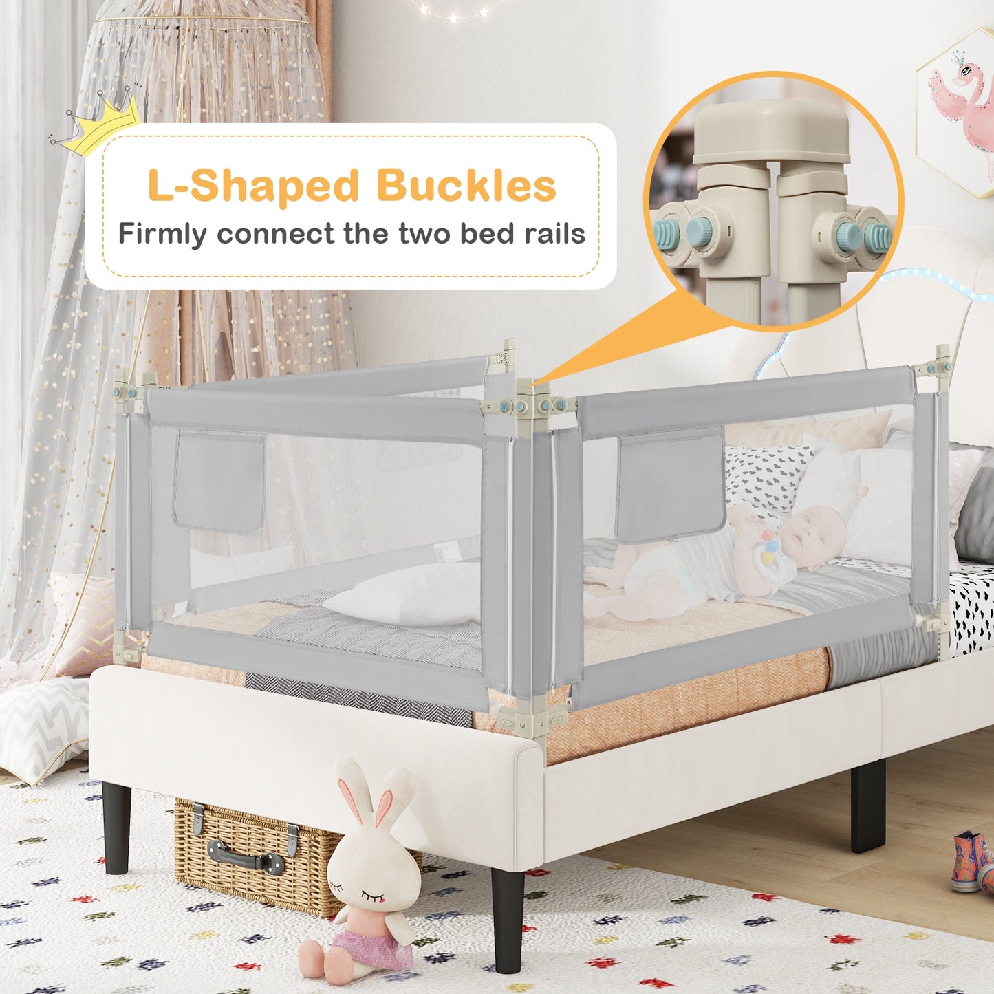 Barrière de lit pour tout-petit avec poche latérale, 24 hauteurs ajustables, gris