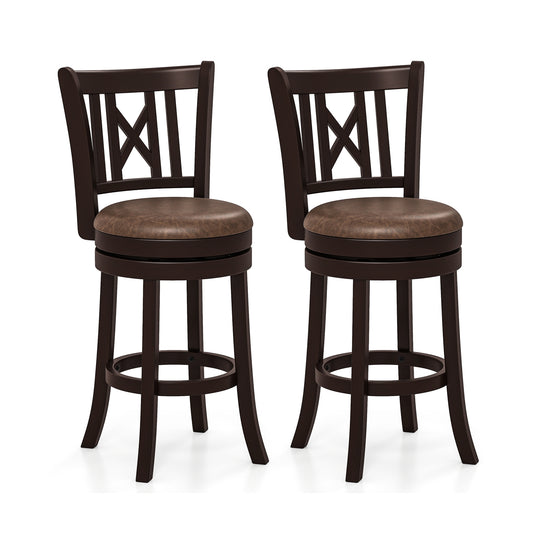 Set of 2 Swivel Bar Stools Counter Height Barstools with Backrest Upholstered Seat Cushion-29 Inches