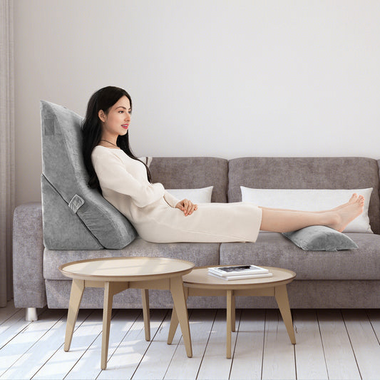 7 Piece Bed Wedge Pillow Set, Memory Foam, Washable Cover, Gray
