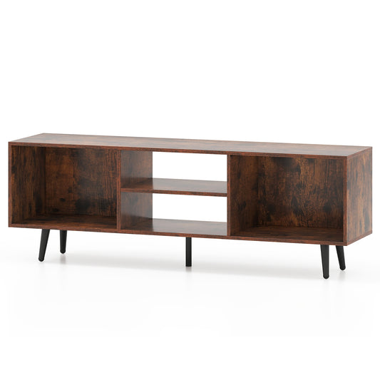 2-Door TV Stand for TVs up to 65 Inch with Open Shelves, Oak