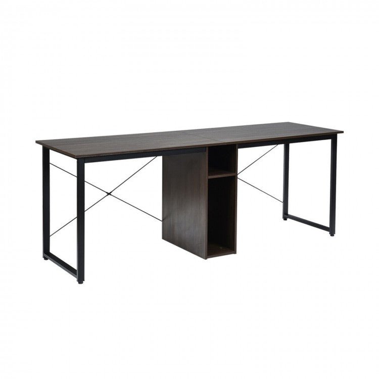 96 Inch Gaming Desk, Dual Computer Desk, Rustic Brown, Brown