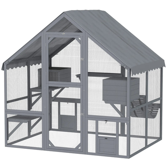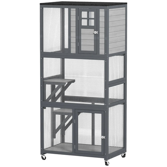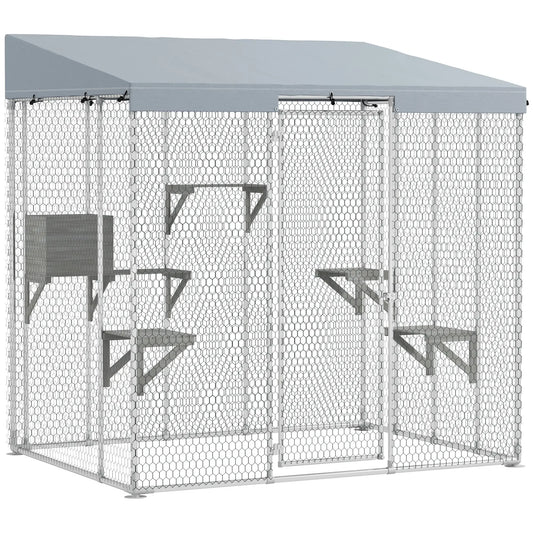 Outdoor Cat Enclosure, 6 Jumping Platforms, Weatherproof Roof, Large Door, 59" x 28" x 60", Grey