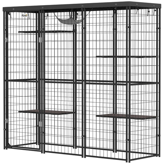 Wire Catio, 69" x 22" x 62", Waterproof Cover, 4 Platforms, Hammock, Black