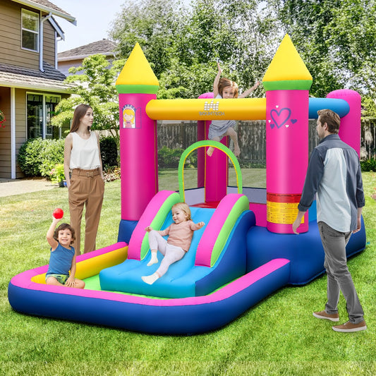 Inflatable Water Slide Park Giant Bounce House with 950W Blower, Blue