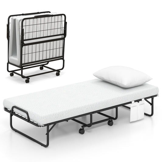 Lit escamotable taille bébé, pliable, roues verrouillables, marron rustique