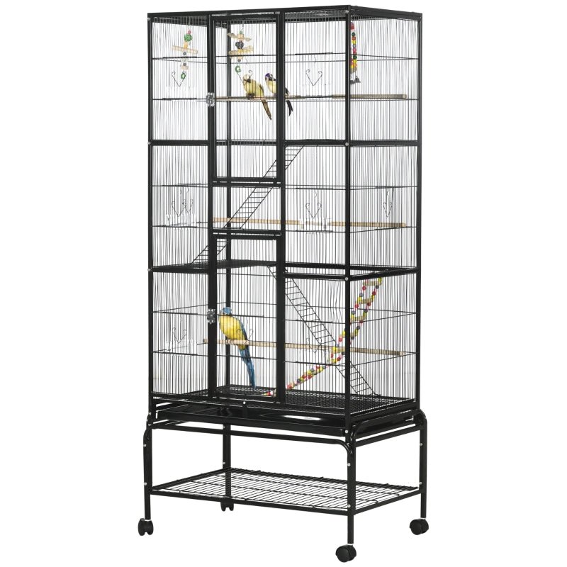 65" Cage à oiseaux pour Canaris, Inséparables, Pinsons, Noir