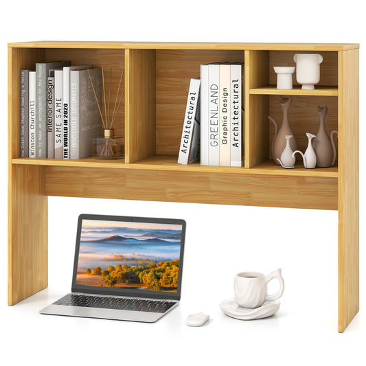 Computer Desktop Bookcase with 4 Cubbies and Open Back Compartment-HT, Walnut