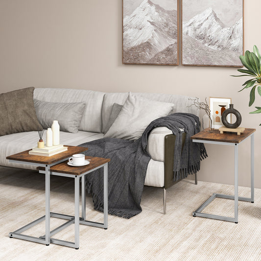 C-Shaped Side Table with Adjustable Foot Pads for Living Room Bedroom, Dark Gray
