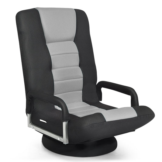 Folding Floor Chair Convertible Lazy Chair with 14-Poistion Adjustable Backrest, Gray