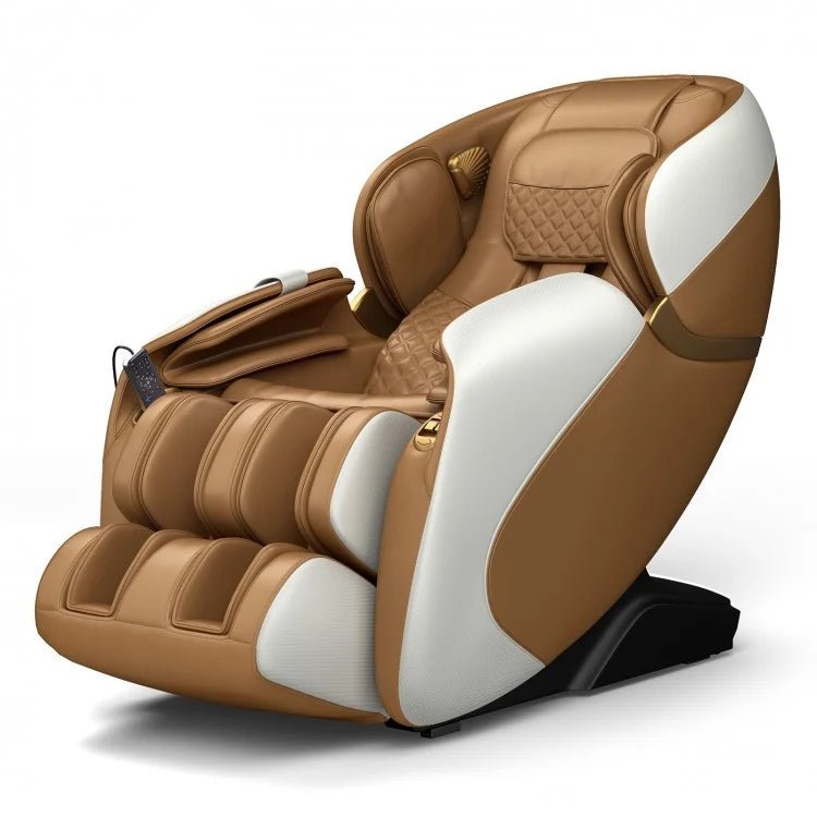Chaise de bureau avec massage, simili cuir, support lombaire, repose-pieds, marron