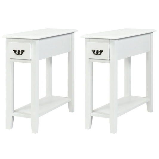 Table Basse à LED Réglable, 2 Tiroirs, Étagère Ouverte, Télécommande, Blanche