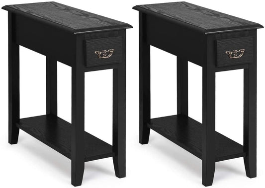 Table Basse à LED Réglable, 2 Tiroirs, Étagère Ouverte, Télécommande, Noir Haut Brillant