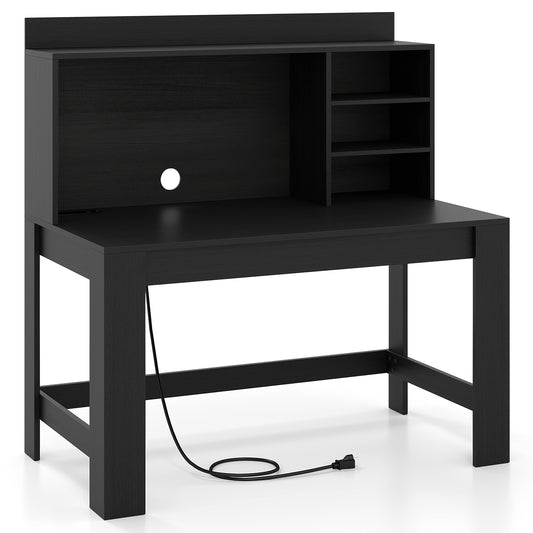 Computer Desk with Power Outlets 42inch Writing Desk with Hutch Drawer and 2 Open Shelves, Black