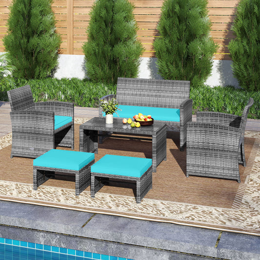 8 Pieces Patio Cushioned Rattan Furniture Set, Red