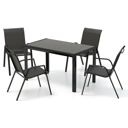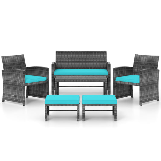 5 Pieces PE Wicker Patio Furniture Set with Acacia Wood Frame