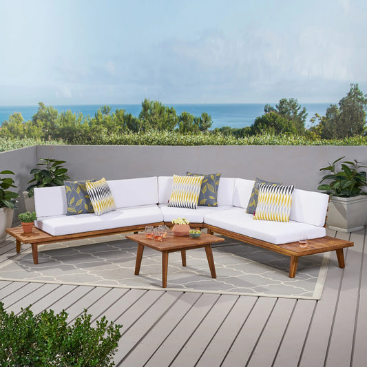 7-Pieces Patio Dining Table Set Acacia Wood Table and 6 Armchairs