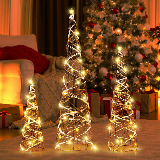 Set of 1/2 4 FT Pre-lit Artificial Christmas Trees Potted Xmas Tree with 80 Dimmable LED Lights-Set of 1