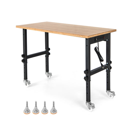 Folding Sewing Table with Storage Shelf and 5 Lockable Wheels, Natural