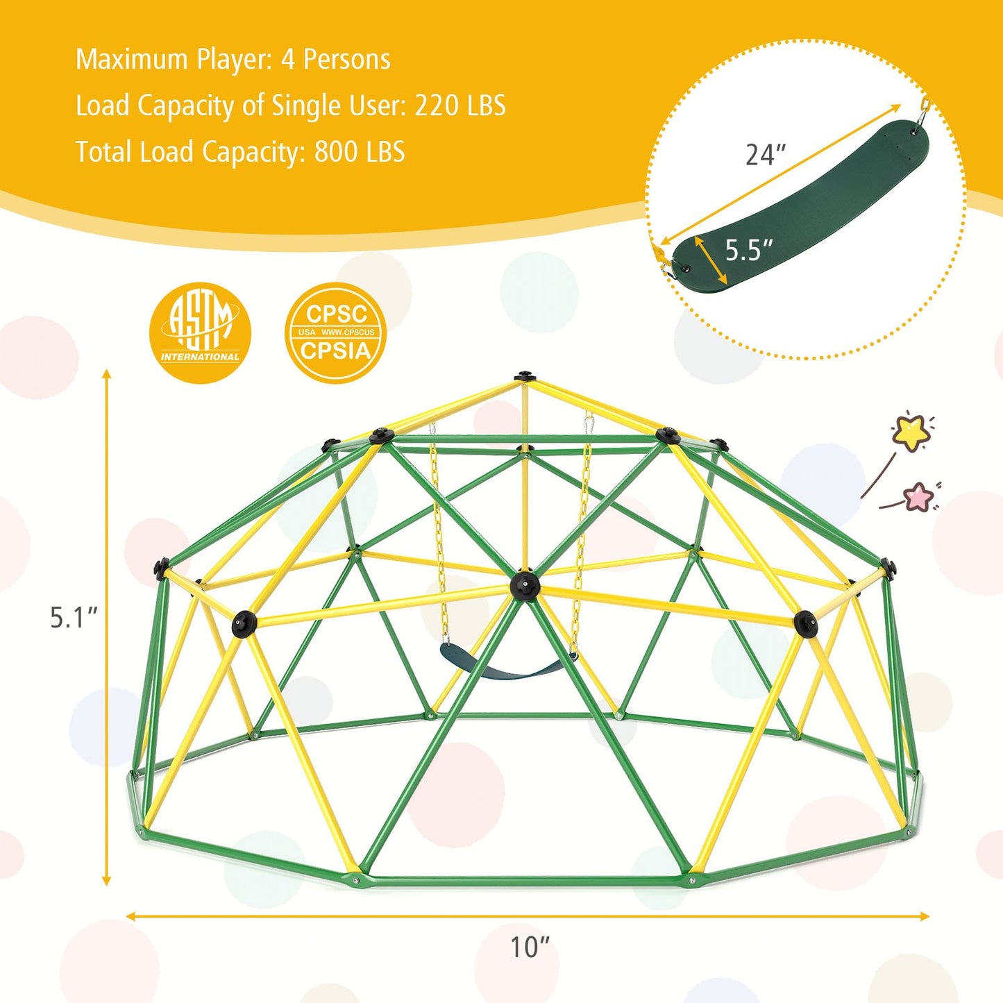 10 Feet Dome Climber With Swing, 800 Lbs Load Capacity, Green