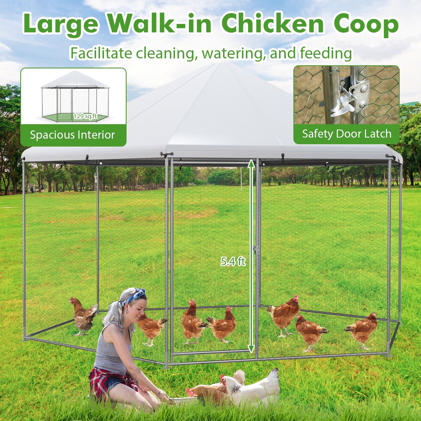 ● Grand espace et large application : Bénéficiant d'une grande surface de 13' x 11,4' x 8,6' (LXWXH), le poulailler de ferme hexagonal peut accueillir confortablement jusqu'à 15 à 30 poulets. En outre, le grand poulailler en métal peut fournir un habitat confortable pour le paon, l'oie, le lapin, le canard et d'autres volailles.