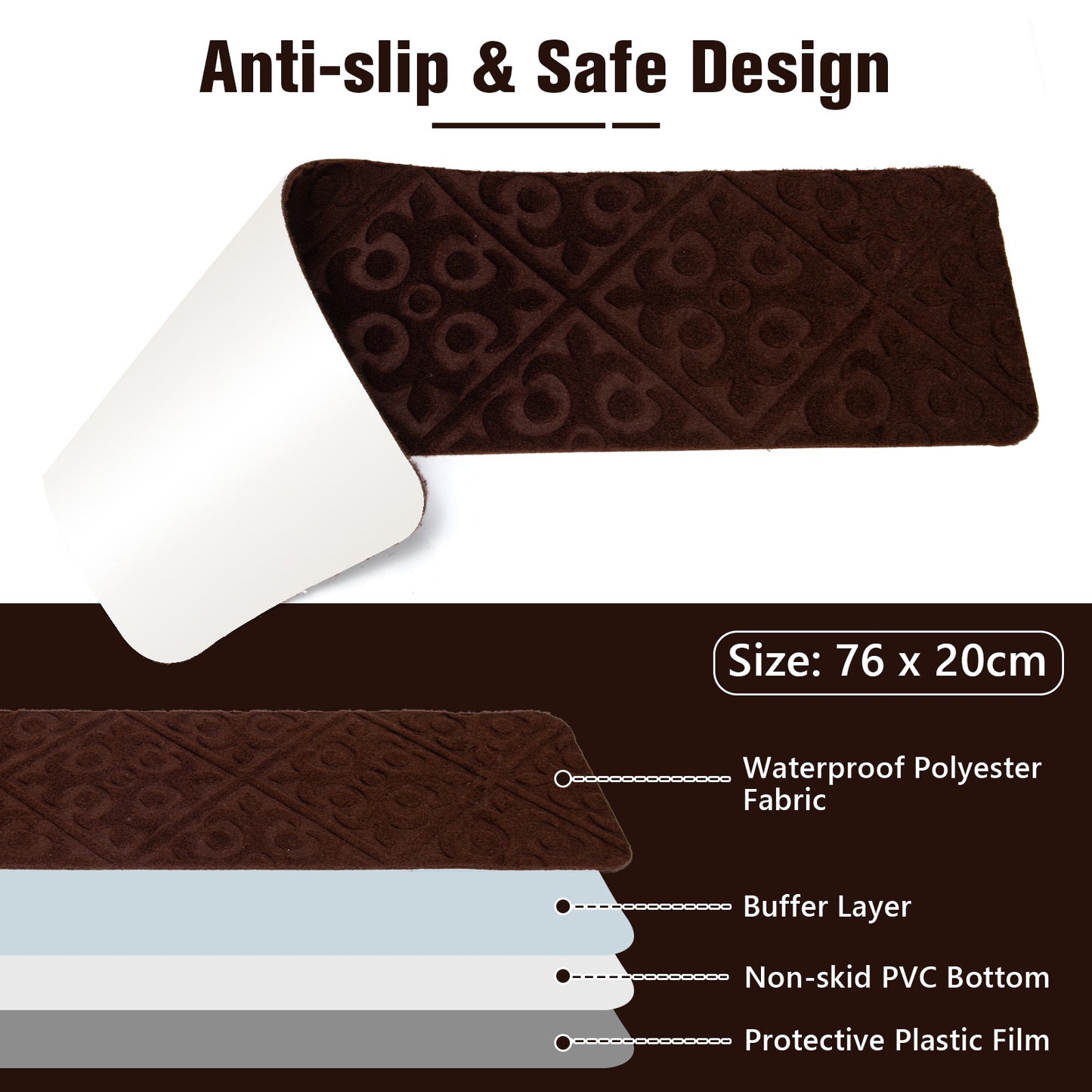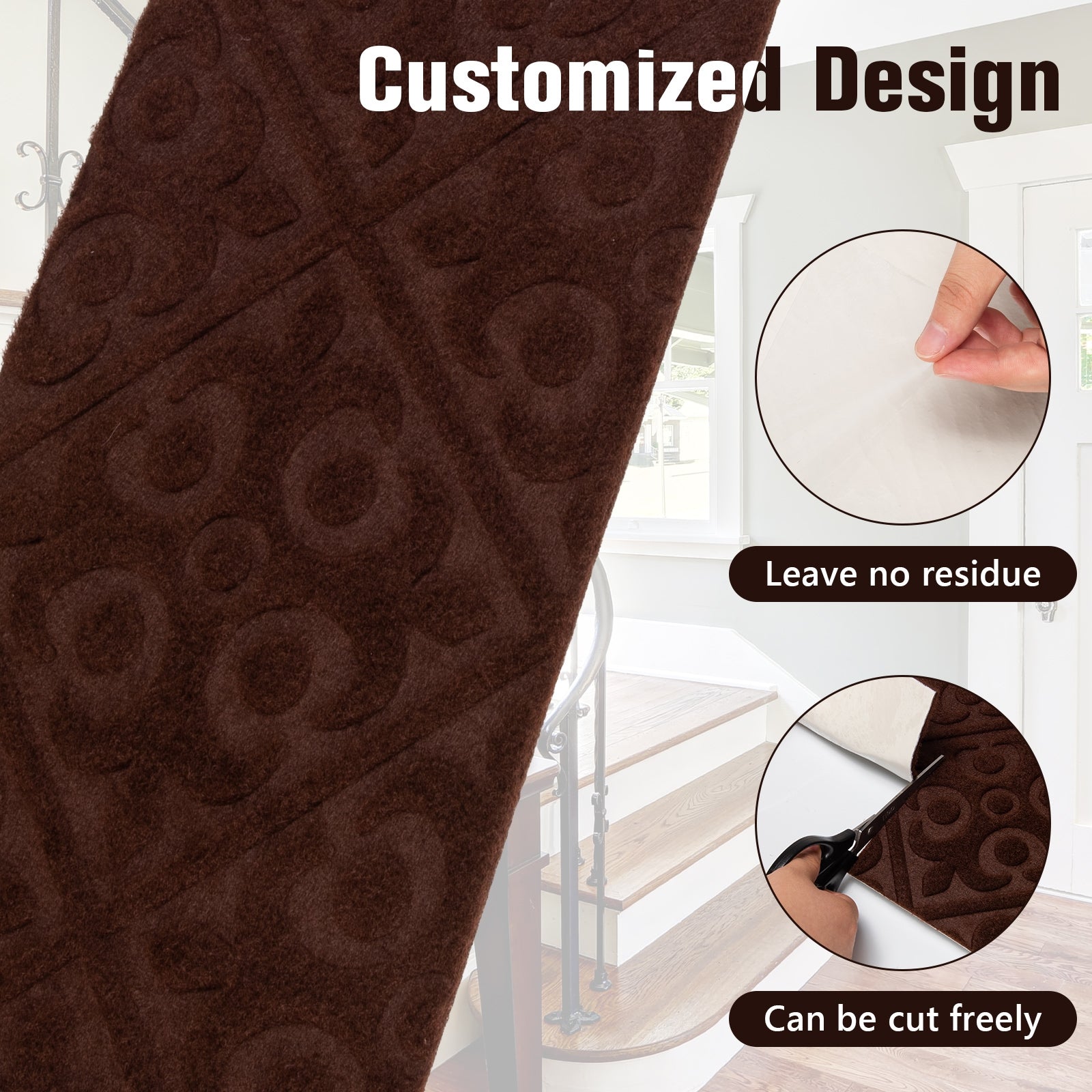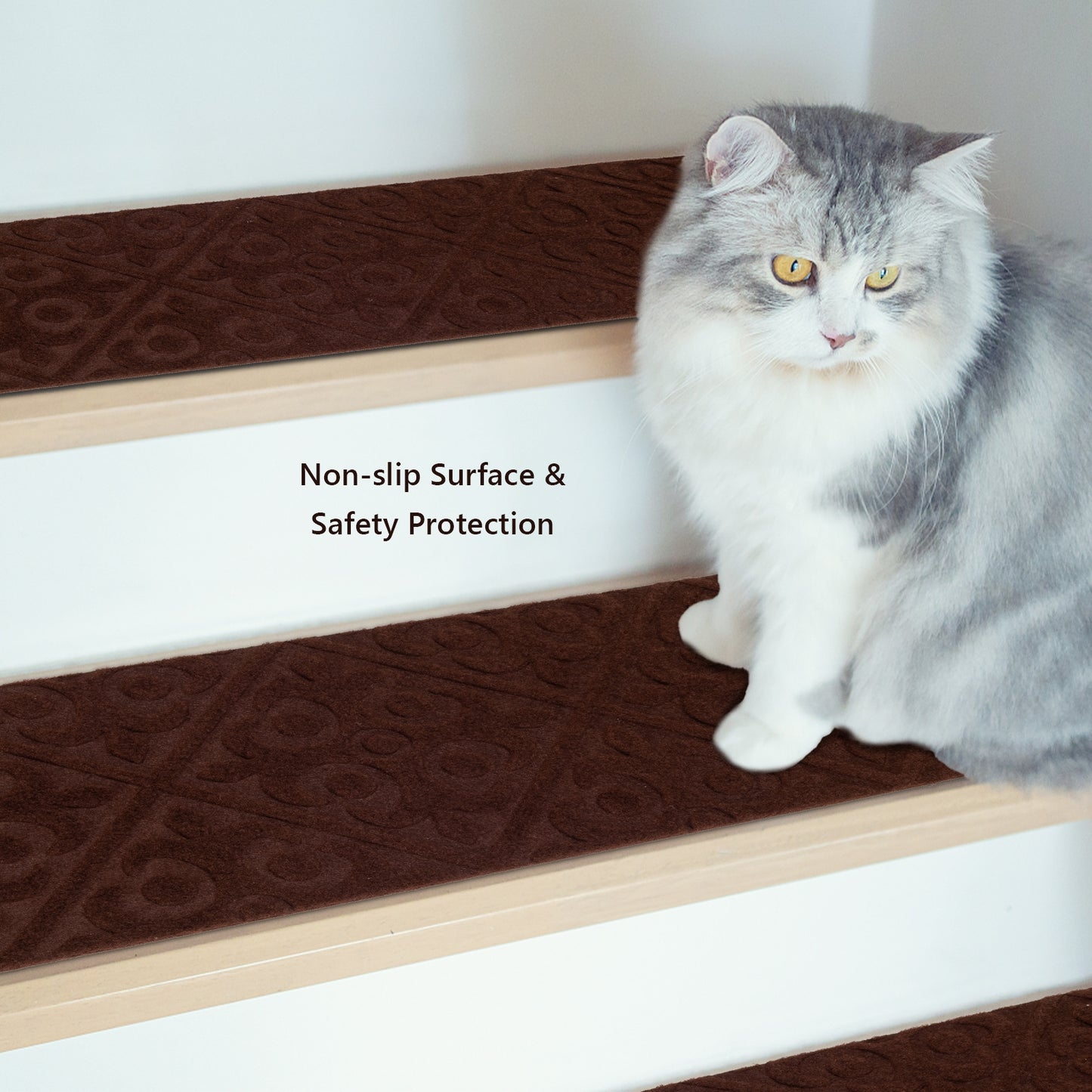 15 Pièces Tapis d'Escalier Intérieur Anti-Dérapant, Marron