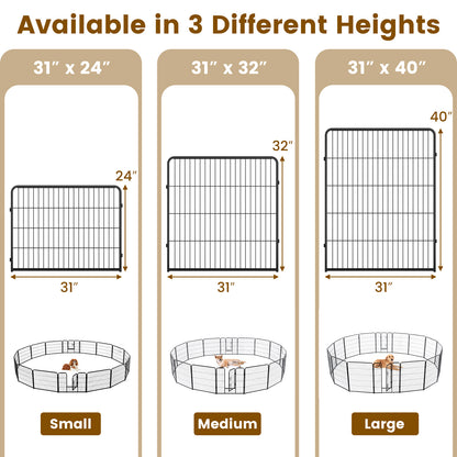 16 Panel Dog Playpen, 24 Inches Height, With Lock And Large Door