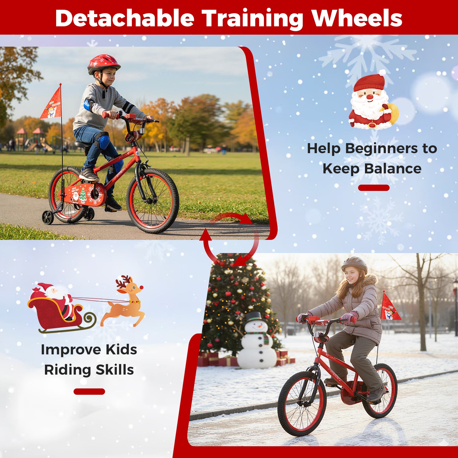 18 Inch Kids Bike Adjustable with Christmas Music & Flag for Aged 4-8 Years Old, Red