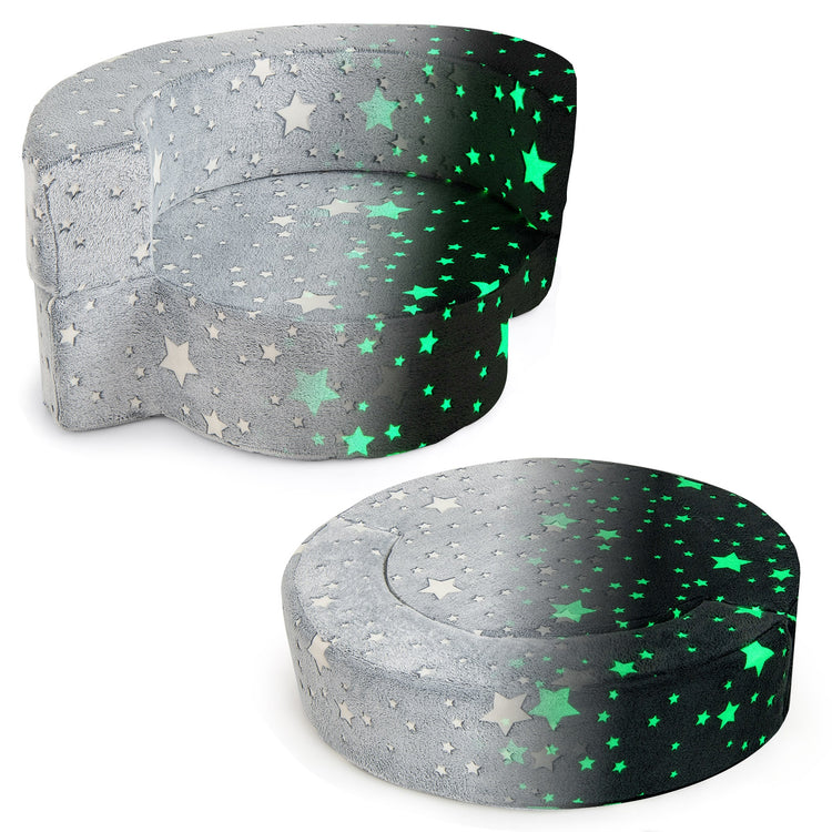 2-in-1 Toddler Chair Glow in the Dark Kids Couch with Cover Convertible Sofa, Gray