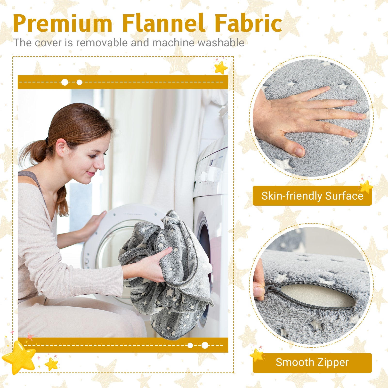 • Soft to touch with premium flannel fabric featuring a skin-friendly surface