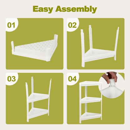 Lightweight yet Reliable Structure: Made of selected PP, the triangle storage rack is sturdy and durable for long-lasting use. Each shelf is tightly connected to the rods while stable support legs account for reliable structure. Weighs only 4.5 lbs, and the floor corner shelf is easy to carry around.