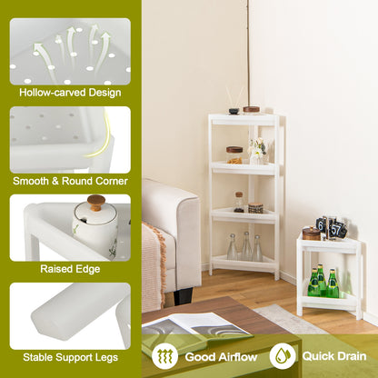 Waterproof Design: The closely spaced drainage holes on each shelf are designed to avoid water accumulation and promote airflow. More, the hollow-carved design makes it easy to adapt to the humid environment of the bathroom or shower, thus extending the life of the corner stand.