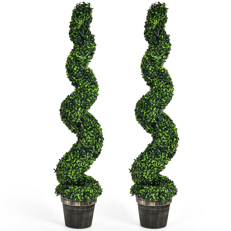 2 Pack 4 Pieds Topiaire Artificielle en Buis Spirale, Vert