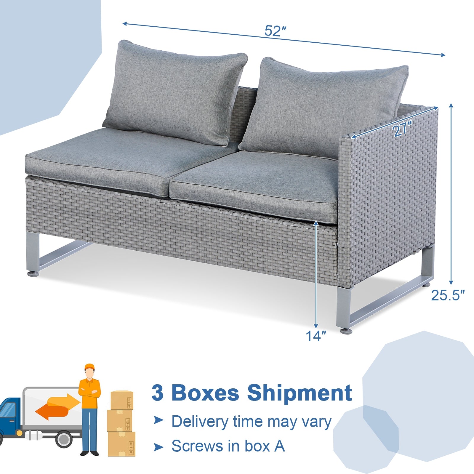 ● Utilisation polyvalente : mesurant 52" x 27" x 25,5" (L x L x H) dans les dimensions de chaque canapé, cet ensemble de meubles en osier convient à différents endroits, tels que le patio, la cour et le bord de la piscine, etc.