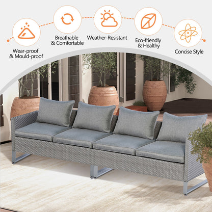 ● Canapés rembourrés : Les coussins rembourrés doux rendent cet ensemble de conversation de patio confortable pendant une longue période assise. Et les housses de coussin sont amovibles et lavables grâce aux fermetures éclair lisses.