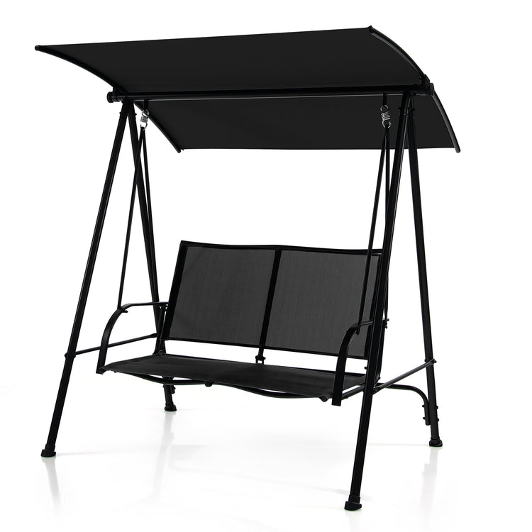 Balançoire d'extérieur à 2 places avec siège en tissu confortable et cadre en métal robuste, noir