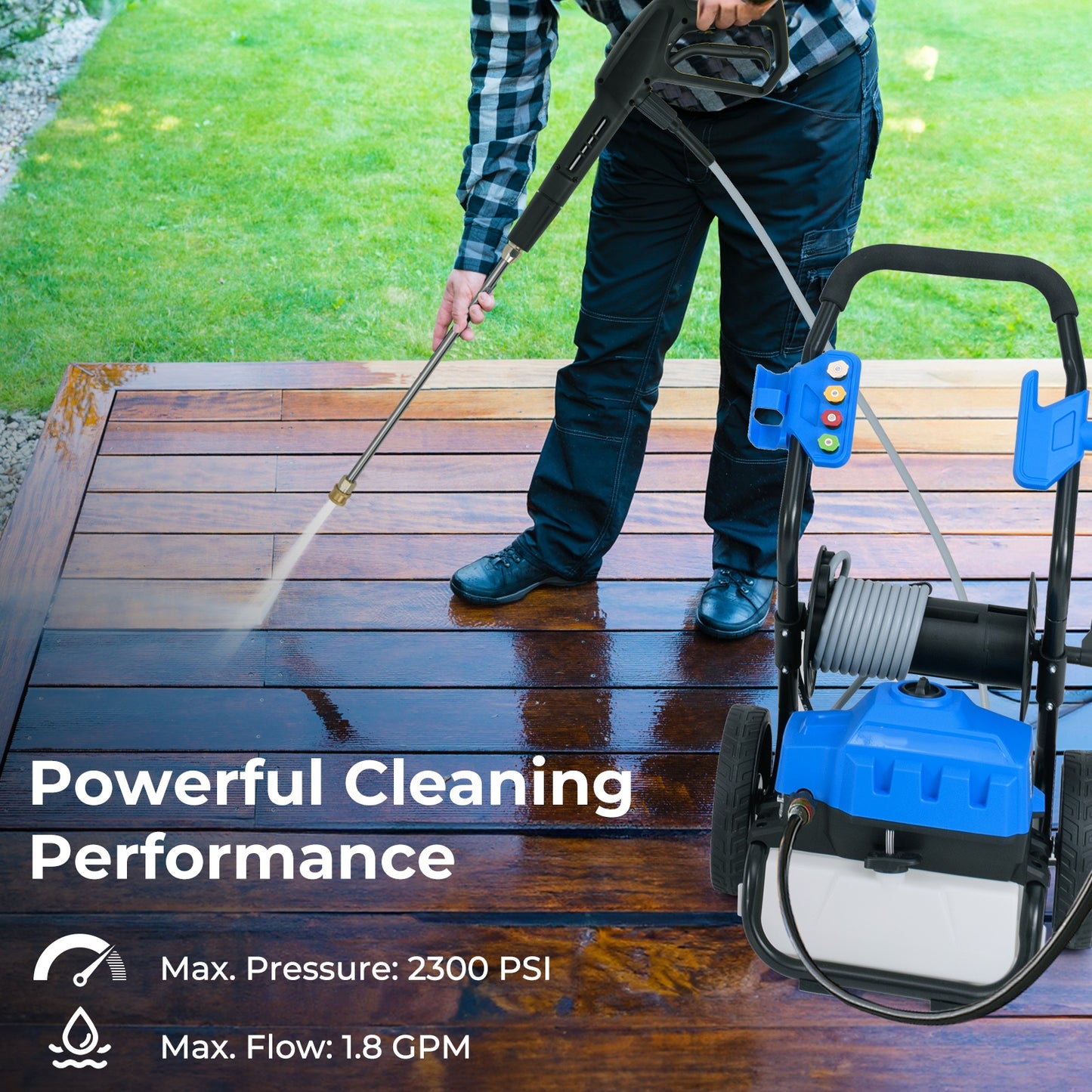 2300 PSI 1.8 GPM Electric Pressure Washer with Wheels and 5 Quick Connect Nozzles, Blue