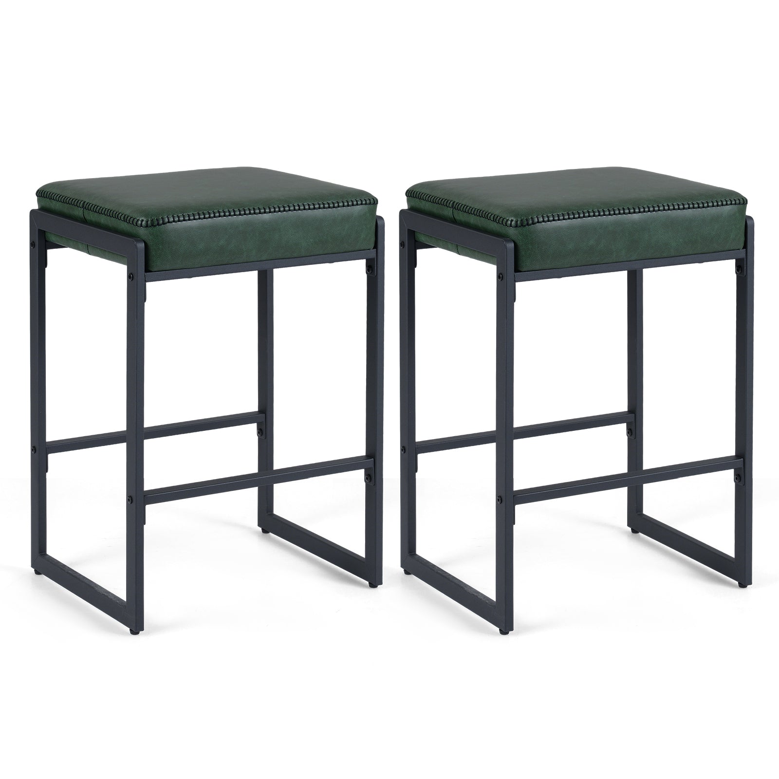 26 inch Bar Stools Set of 2 Counter Height Barstools with Faux Leather Upholstered Seat, Green