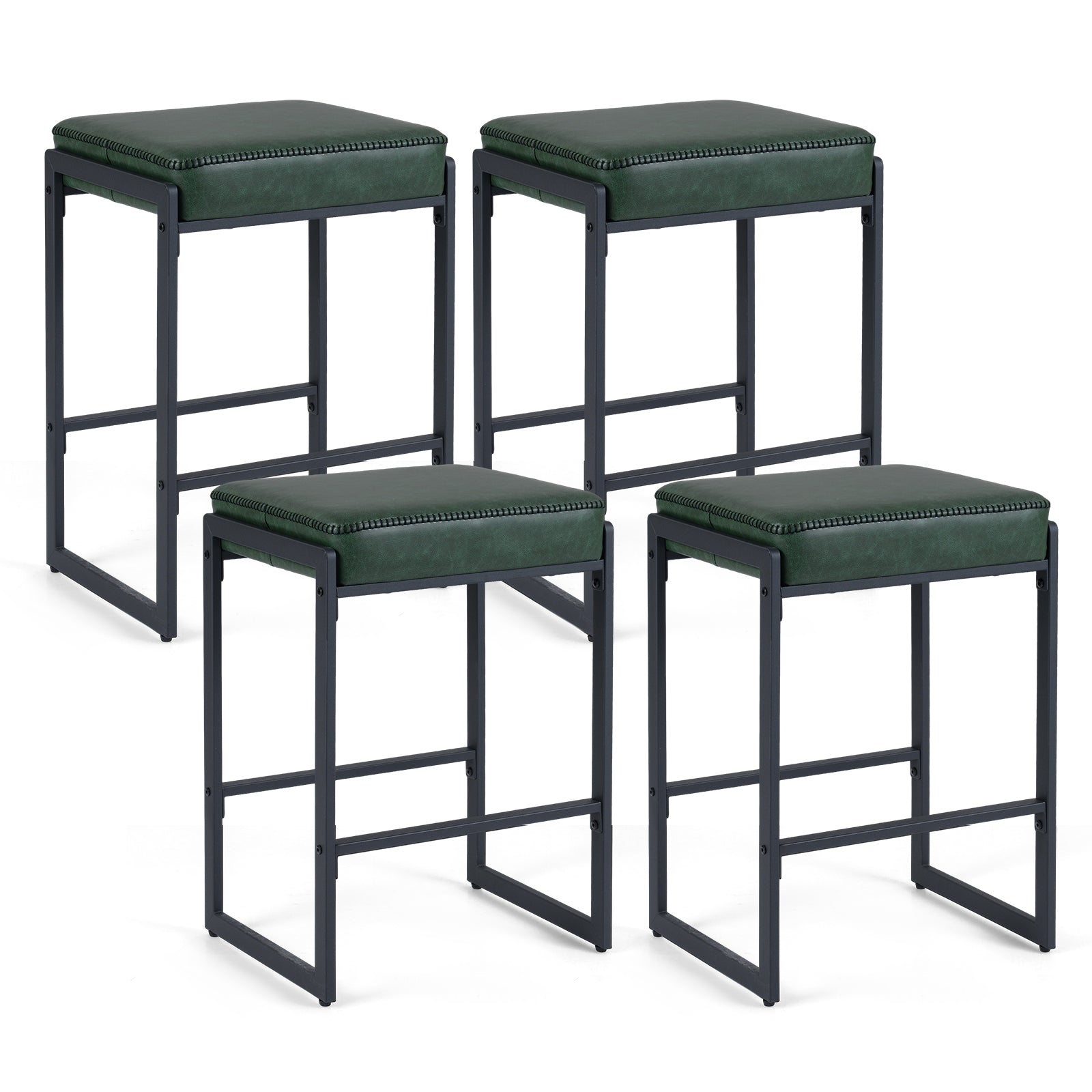 26 inch Bar Stools Set of 4 Counter Height Barstools with Faux Leather Upholstered Seat, Green