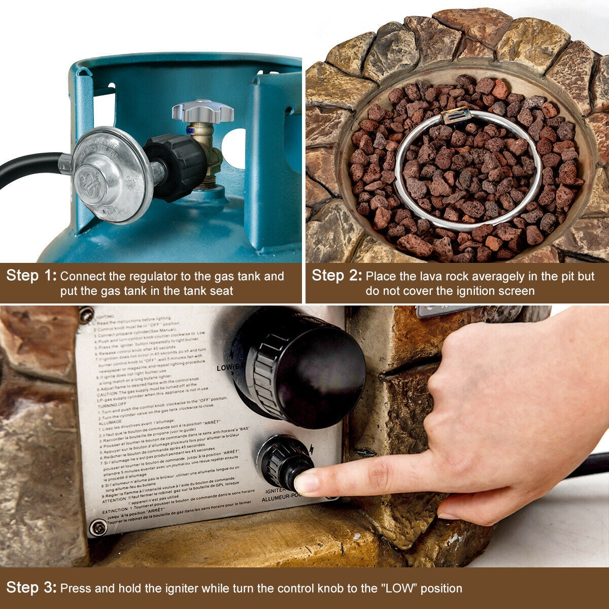 - Combustion chaude et propre : cette table de foyer à gaz peut produire jusqu'à 40 000 BTU de chaleur pour répondre à vos exigences de température extérieure. En outre, des pierres de lave sûres sont recouvertes autour du brûleur, ce qui peut rendre la flamme plus uniforme et rester au chaud plus longtemps. De plus, afin de protéger l'environnement, cette flamme de propane à combustion propre ne produira ni cendres ni fumée.