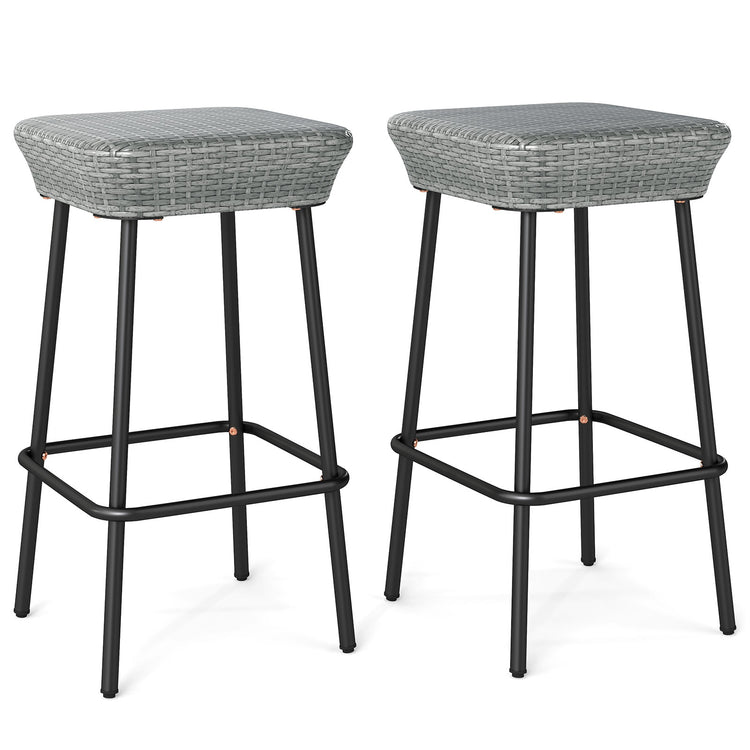 29.5 Inches Patio Bar Stools Set of 2 with Rattan Seat and Footrest, Gray