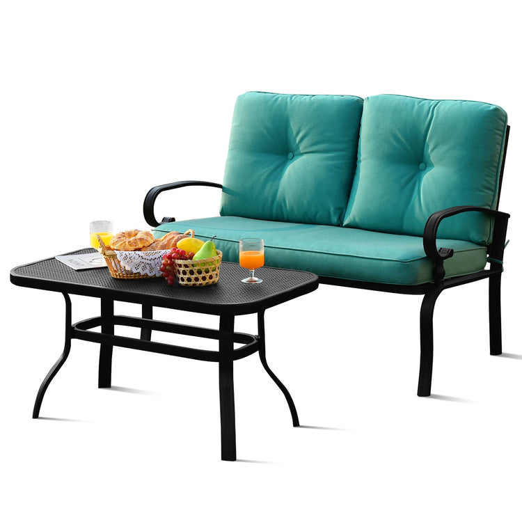 Ensemble de table et banc pour patio 2 pièces, chaise rembourrée, turquoise