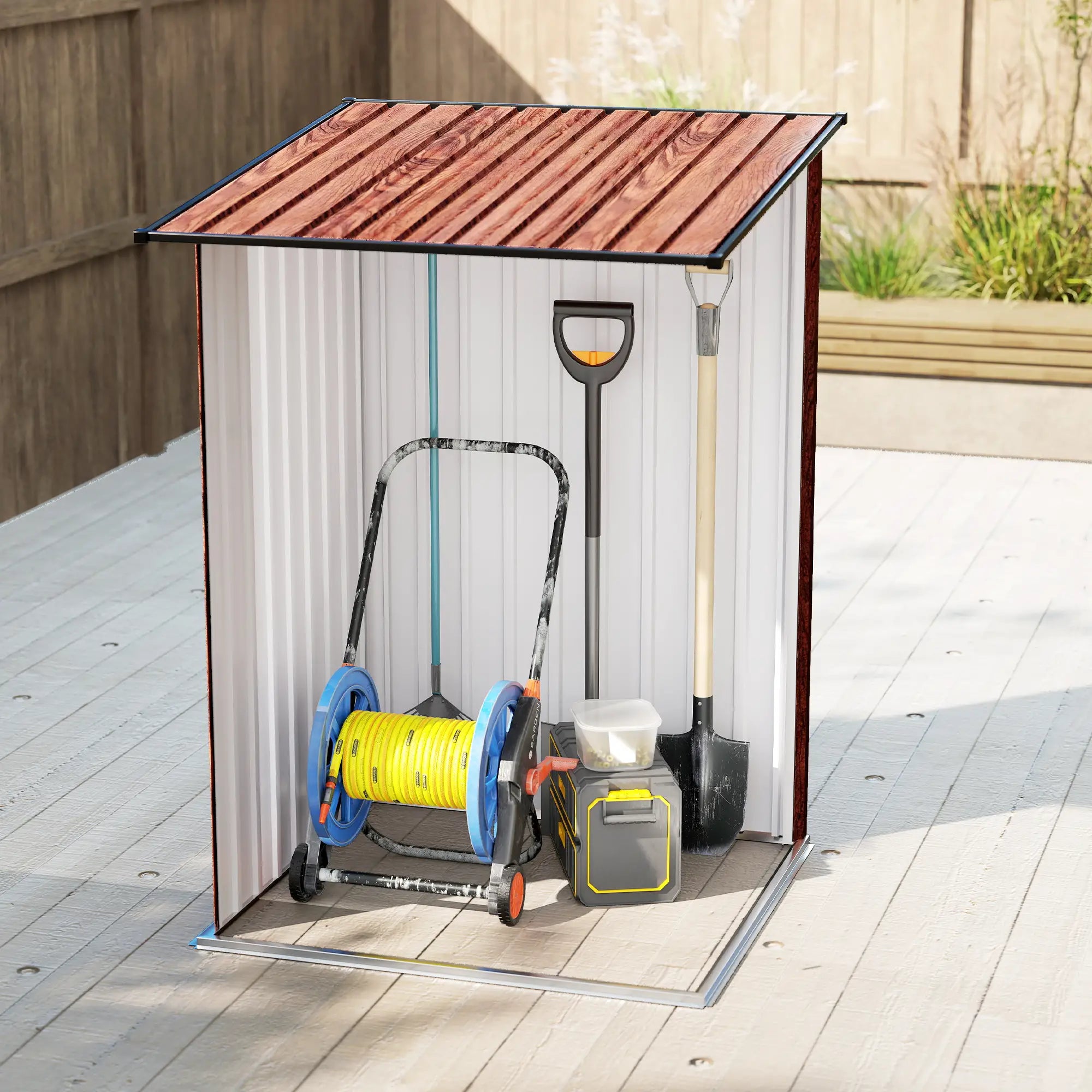 3,3' x 3,4' Abri de jardin en appentis, Maison d'outils en acier galvanisé, Teck
