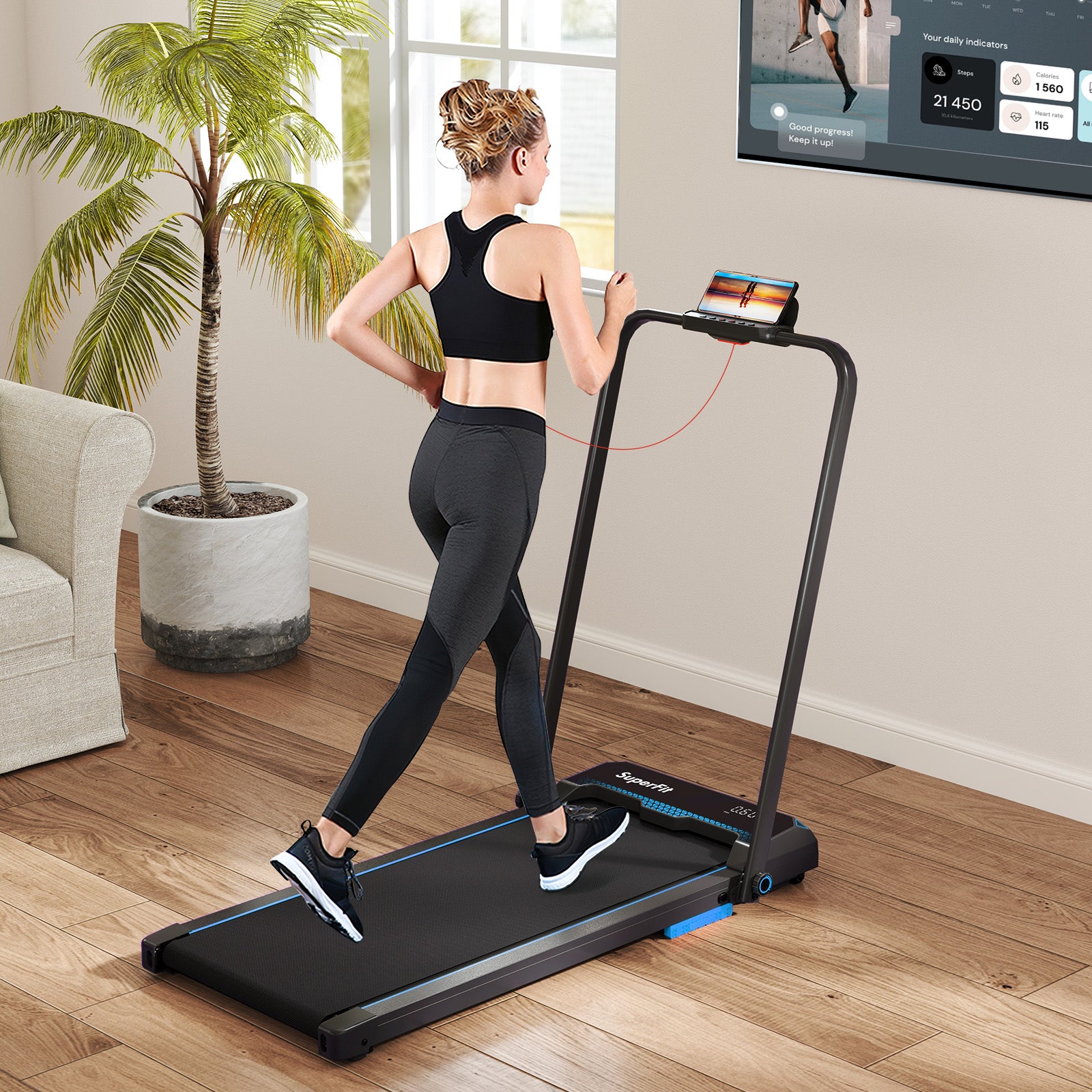 - Tapis de course pliable 3-en-1 polyvalent pour la marche, la course et l'utilisation sous le bureau, idéal pour le fitness à domicile et les modes de vie actifs.