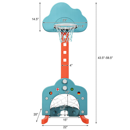 Le panier de basket 3 en 1 pour tout-petit comprend un jeu de golf, un jeu de basket-ball et un jeu de but de football.