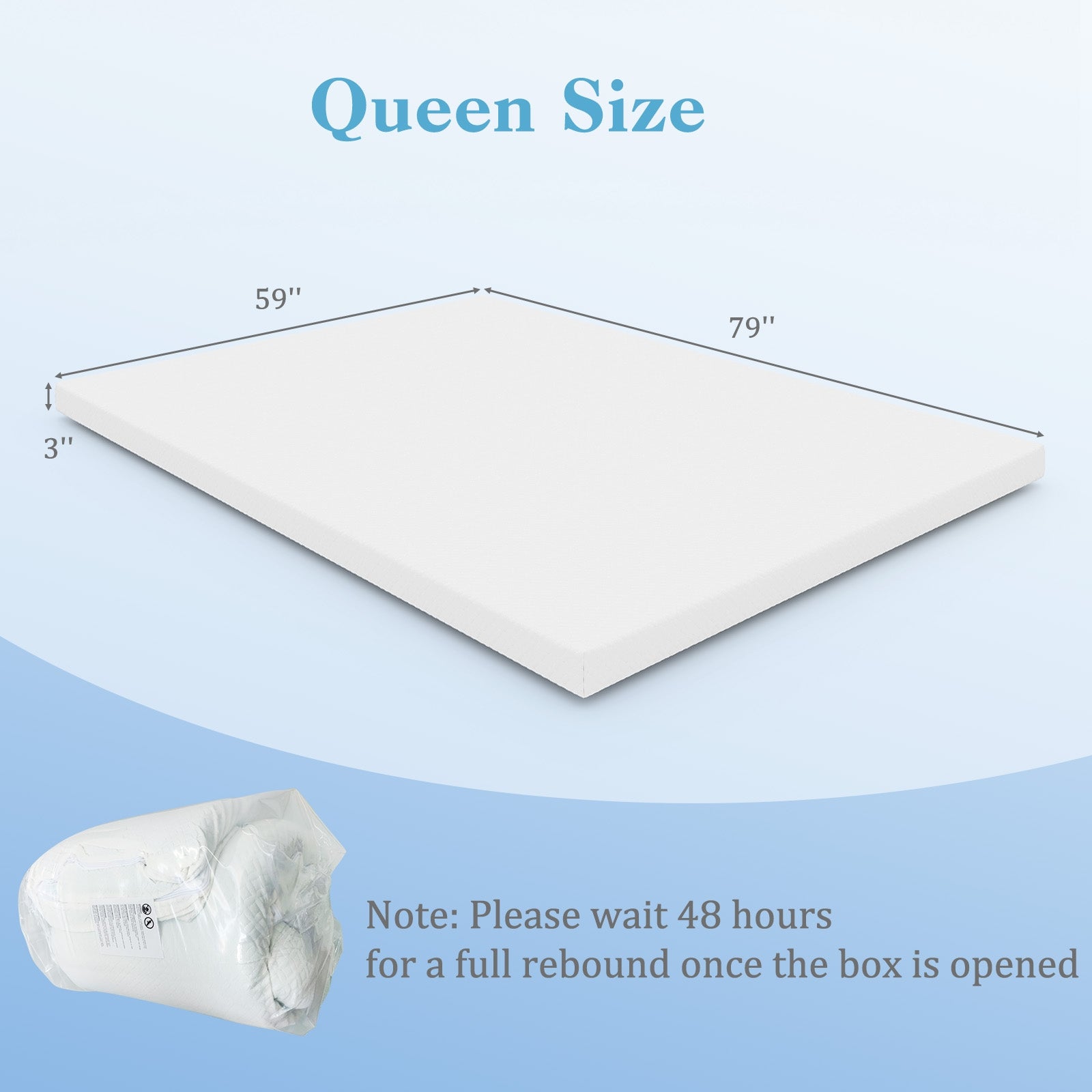 3 Inch Gel-Infused Memory Foam Mattress Topper with Removable Cover-Queen Size, White