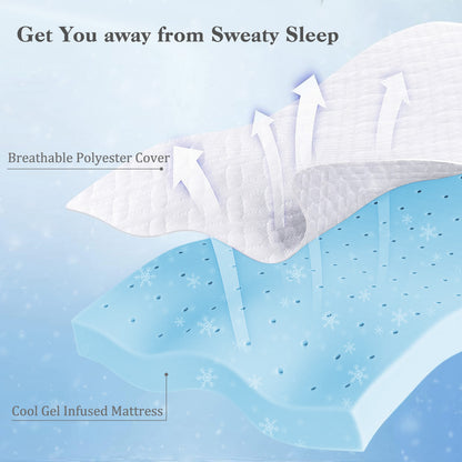 • Memory foam mattress conforms to your body for pressure relief• Breathable polyester fabric cover for restful night's sleep