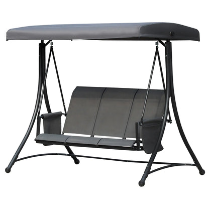 Balançoire de porche pour 3 personnes, dossier haut, poches latérales, auvent ajustable, gris foncé