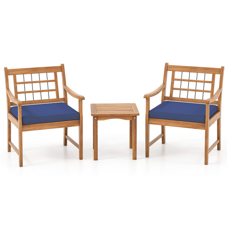 3 Piece Wood Patio Furniture Set with Seat Cushions and Acacia Wood Frame, Navy