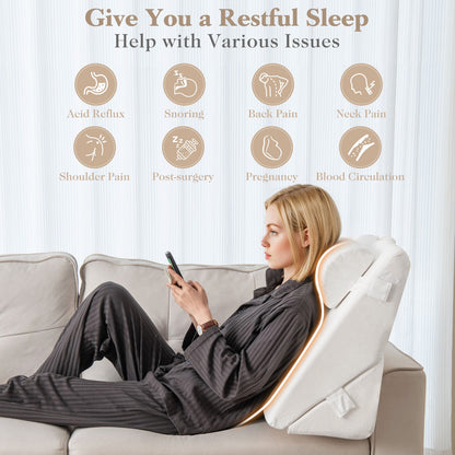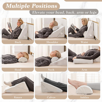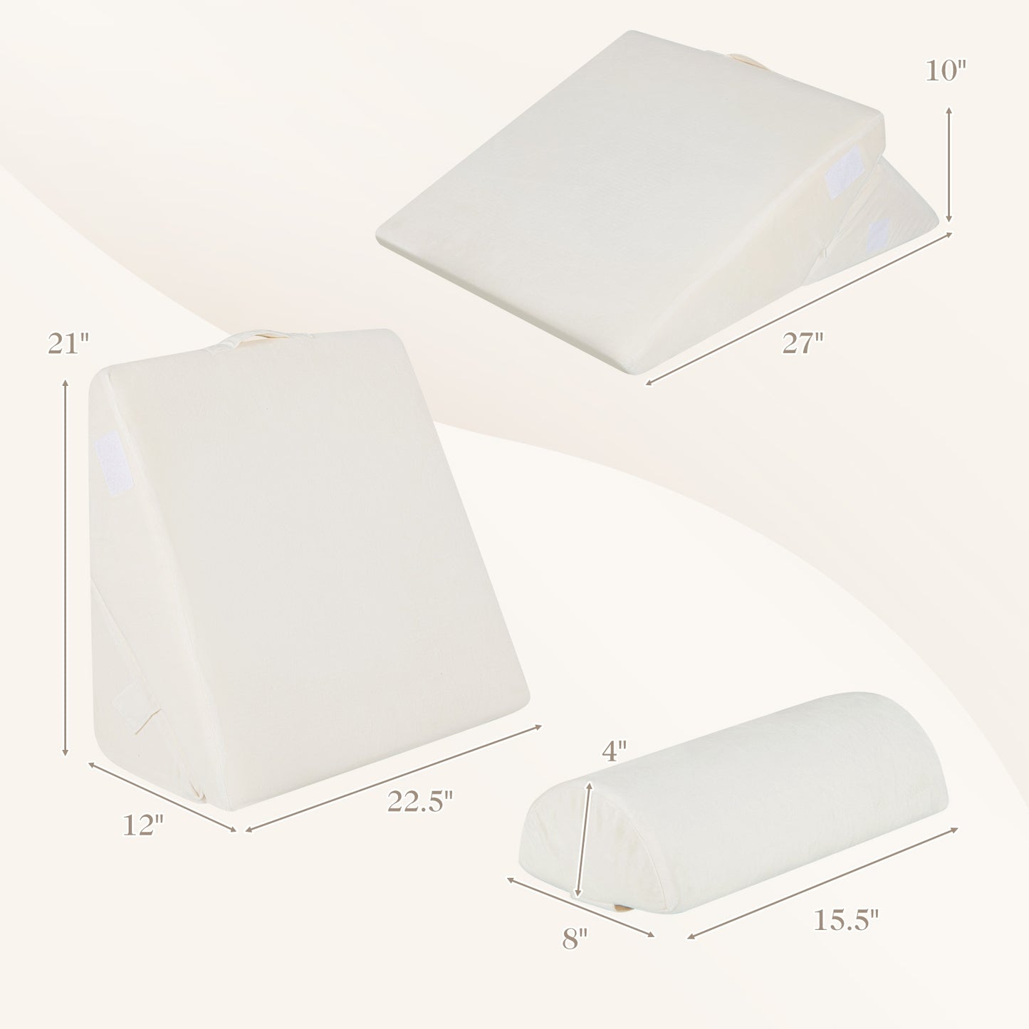 - Adjustable wedge pillow set with head pillow and triangle pillows.